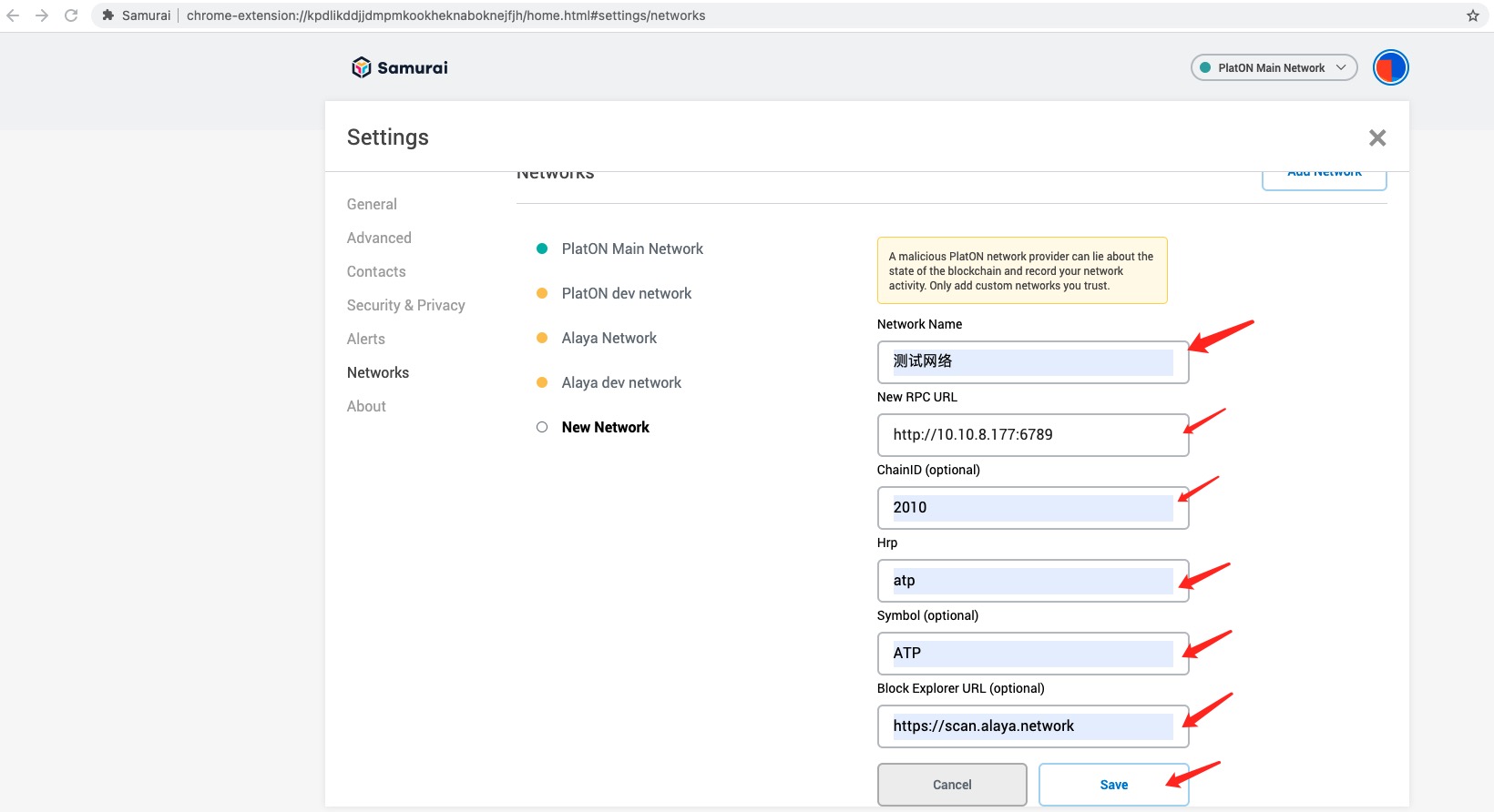 By default, Samurai connects to the PlatON network, or it can connect to other networks.