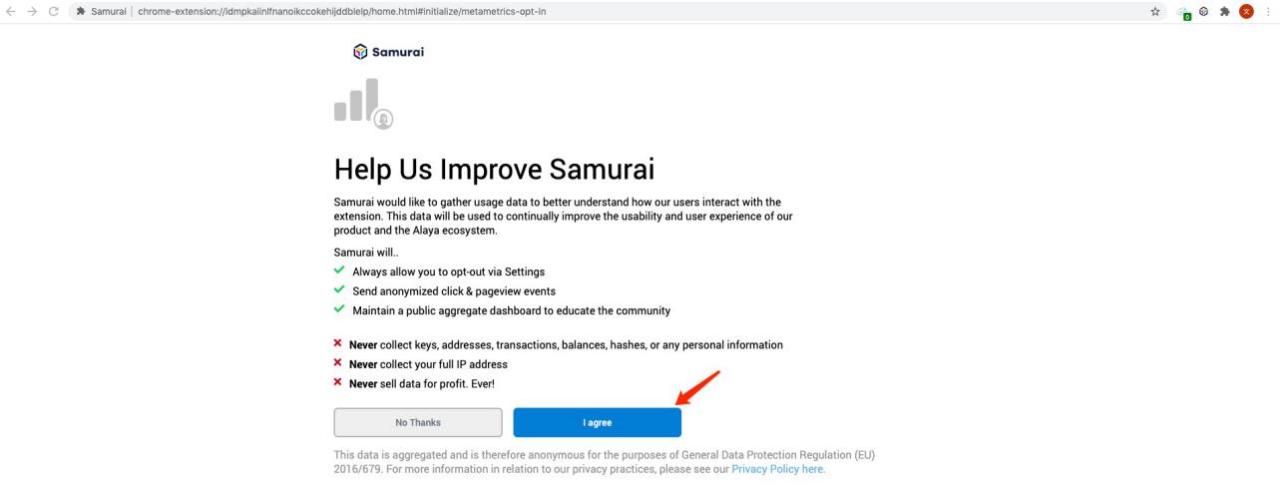 Samurai is an open source browser plug-in wallet tool that supports the Alaya and PlatON networks, supporting wallet creation, sending and receiving ATP and LAT, and allowing web DApps to interact with the Alaya and PlatON networks.