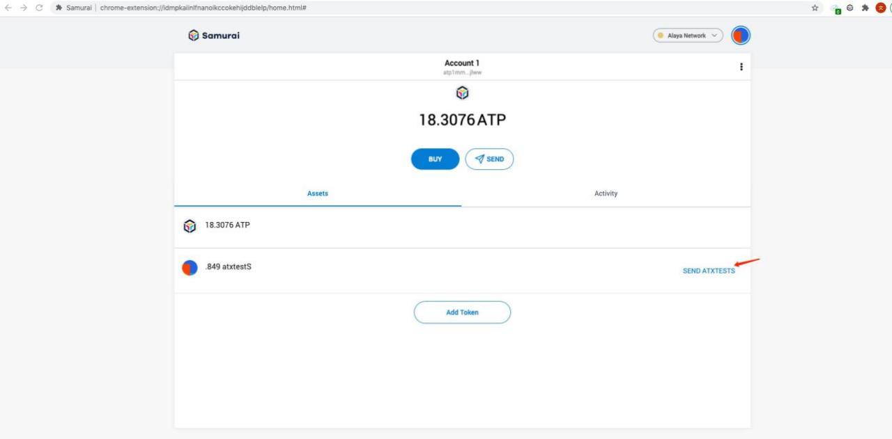 - After the account is successfully added, go to the token display screen, which displays the balance of tokens, or you can click “send” to enter the token transfer page. At the same time, the asset list of the mainpage will display the token assets.