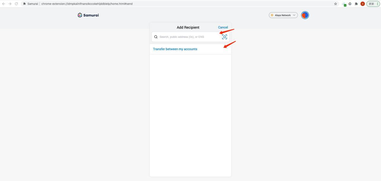 - In the Alaya main network, click "send" on the mainpage, and you can see the Add Recipient page.
