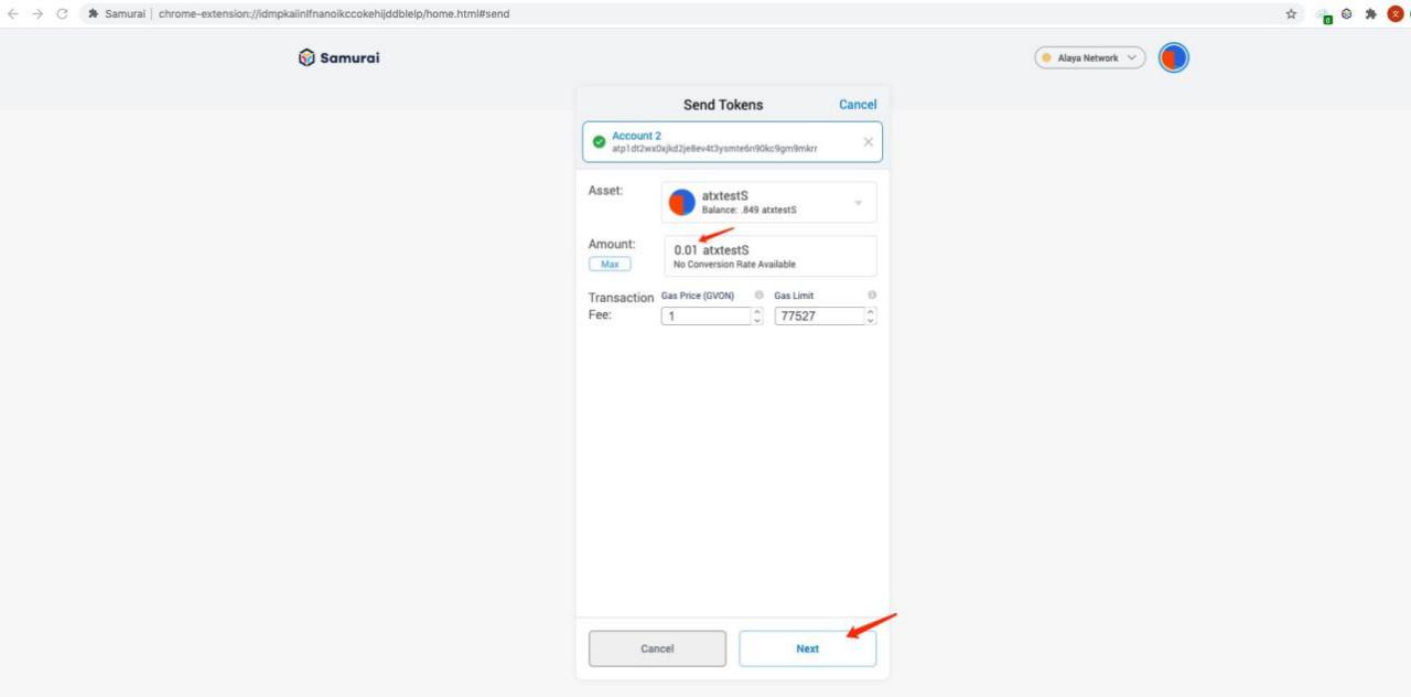 - The transaction form must enter the number of tokens for the transaction. Click “Next” to enter the transaction confirmation page.