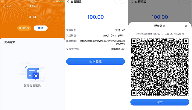 (3)钱包密码输入正确后,页面会展示已签名的交易二维码信息,供观察钱包扫描。