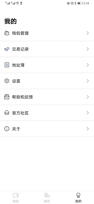 1. 选择【我的-设置】,可以看见地址簿中存储的钱包地址列表。