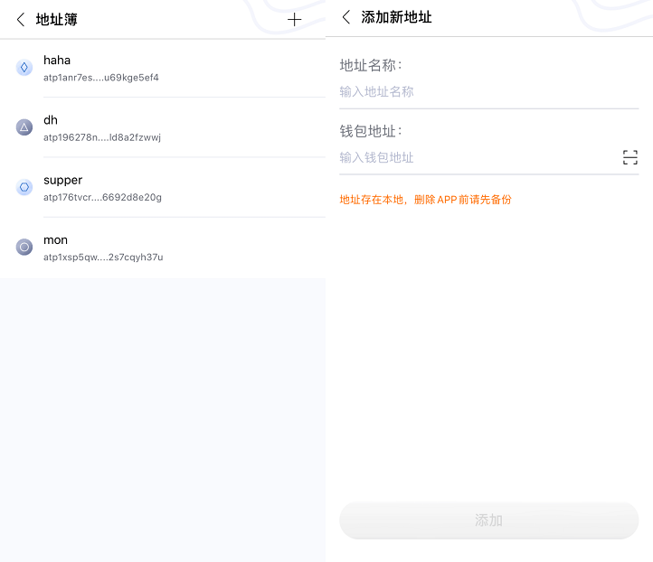 4. 点击顶部导航栏右边的【+】按钮可以实现手动新增地址信息到地址簿。