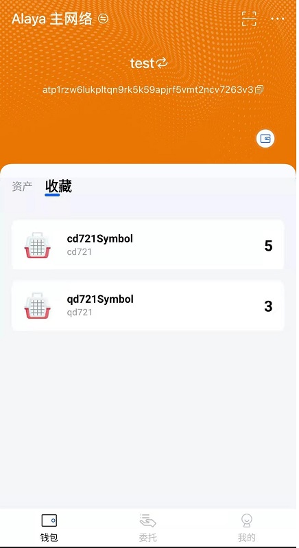 11. “收藏”页签为ARC721资产,点击可以进入ARC721资产列表页面。