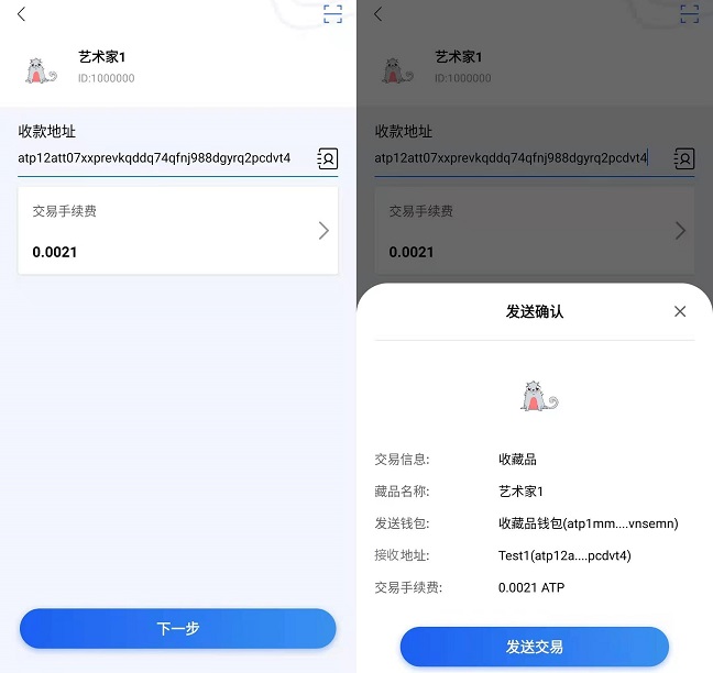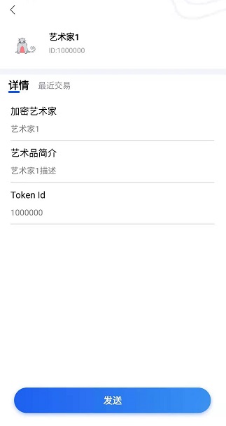 3. 底部是发送该收藏品的按钮,点击后,进入发送页面,可以将该收藏品发送给其他地址。