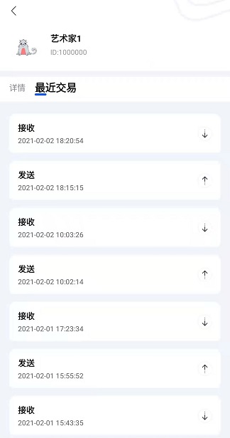 1. 点击“最近交易”可以查看到该收藏品的交易记录列表。
