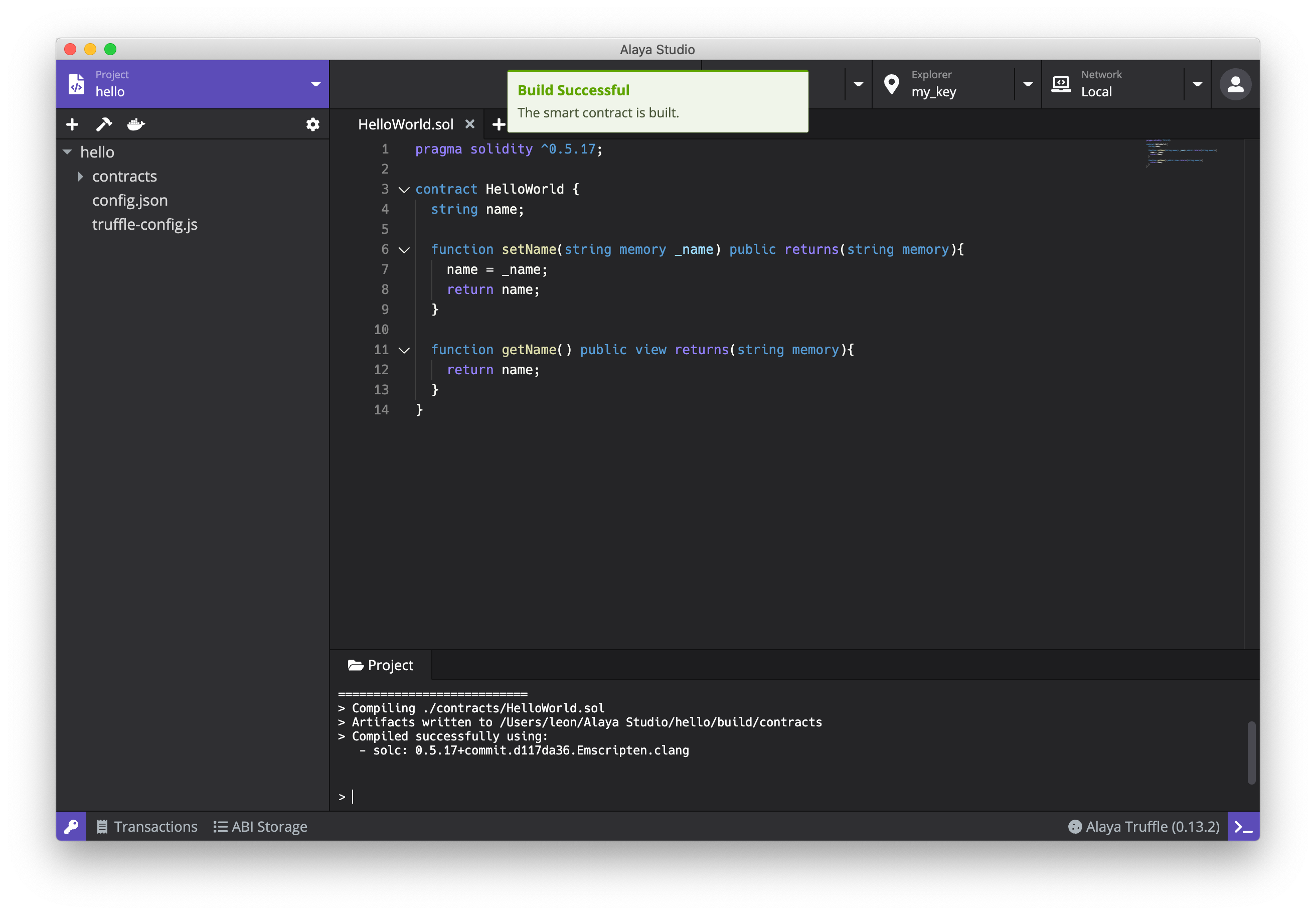 - Hello World (Solidity):基于 Solidity 的一个简单的智能合约;